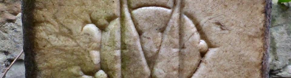 We thought we’d found all the stones in The Secret Garden under ivy and earth etc. There are still some substantial headstones to be tidied up but as they are near a wasp nest we’ve decided to wait until they are no longer a danger to us. The following photos (befores and afters) show a trio of small stones very recently liberated from under years of accumulated organic debris.