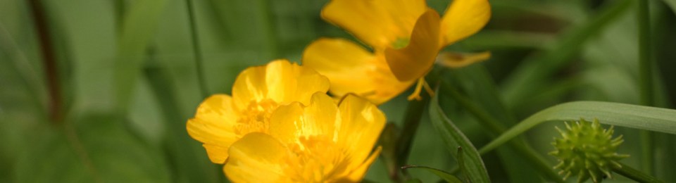 Flowers and a small bee, great tit with food for young, great tit posing on a stone, great spotted woodpecker at an interesting angle, caterpillar suspended from an overhanging tree branch by a silken ‘thread’, bluebells, song thrush, various views, blue tit emerging from nest hole, buttercups, dandelion. Click on an image to view a larger version. This opens in a new tab/page.