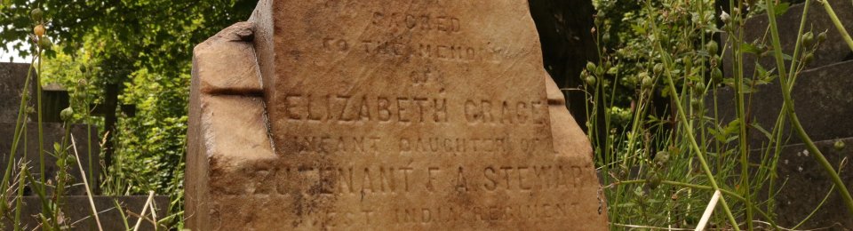 It was covered in a mass of roots and earth, built up over the years. It’s the base of a cross, dedicated to Elizabeth Grace, the infant daughter of Lieutenant F.A. Stewart of the West India Regiment.