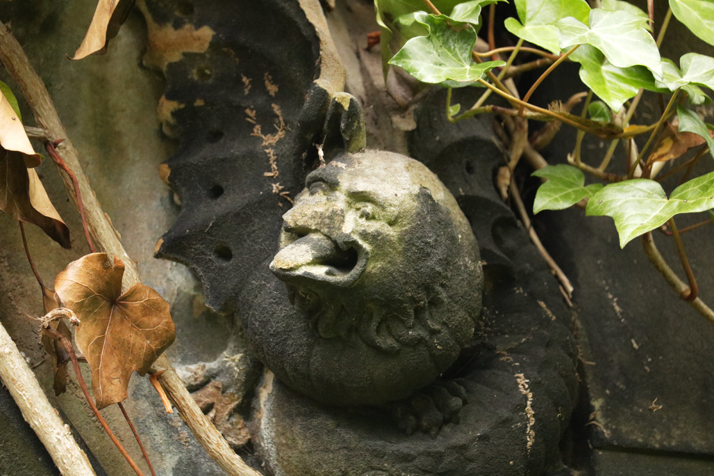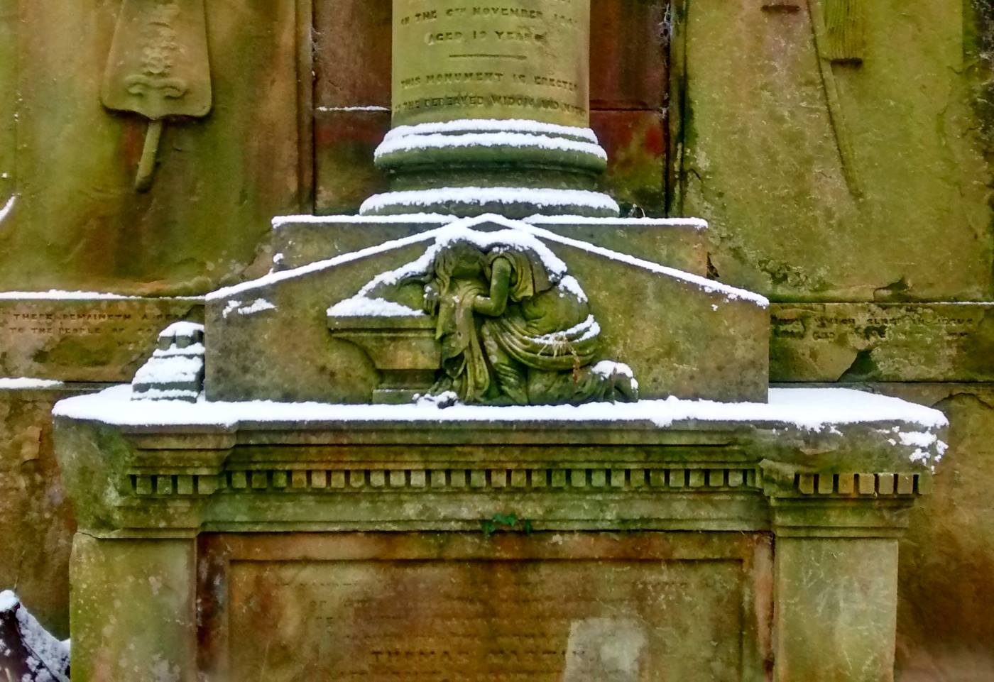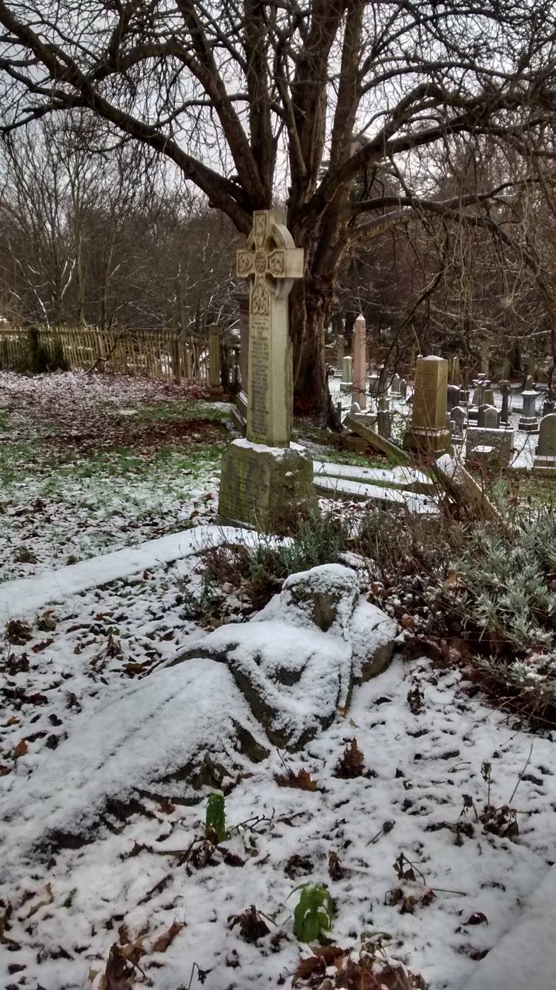 This caught our eye in passing. Had to clear it a bit! Aside from a slur on Scotia’s Darling Seat, it’s an unusual choice of Biblical quotation – not to mention those serpents emerging from the bosses. It’s Hebrews Ch.13 V.14 (and I rather like V.16 also). Didn’t find the cross’s base, so we don’t know who was commemorated. Yet…