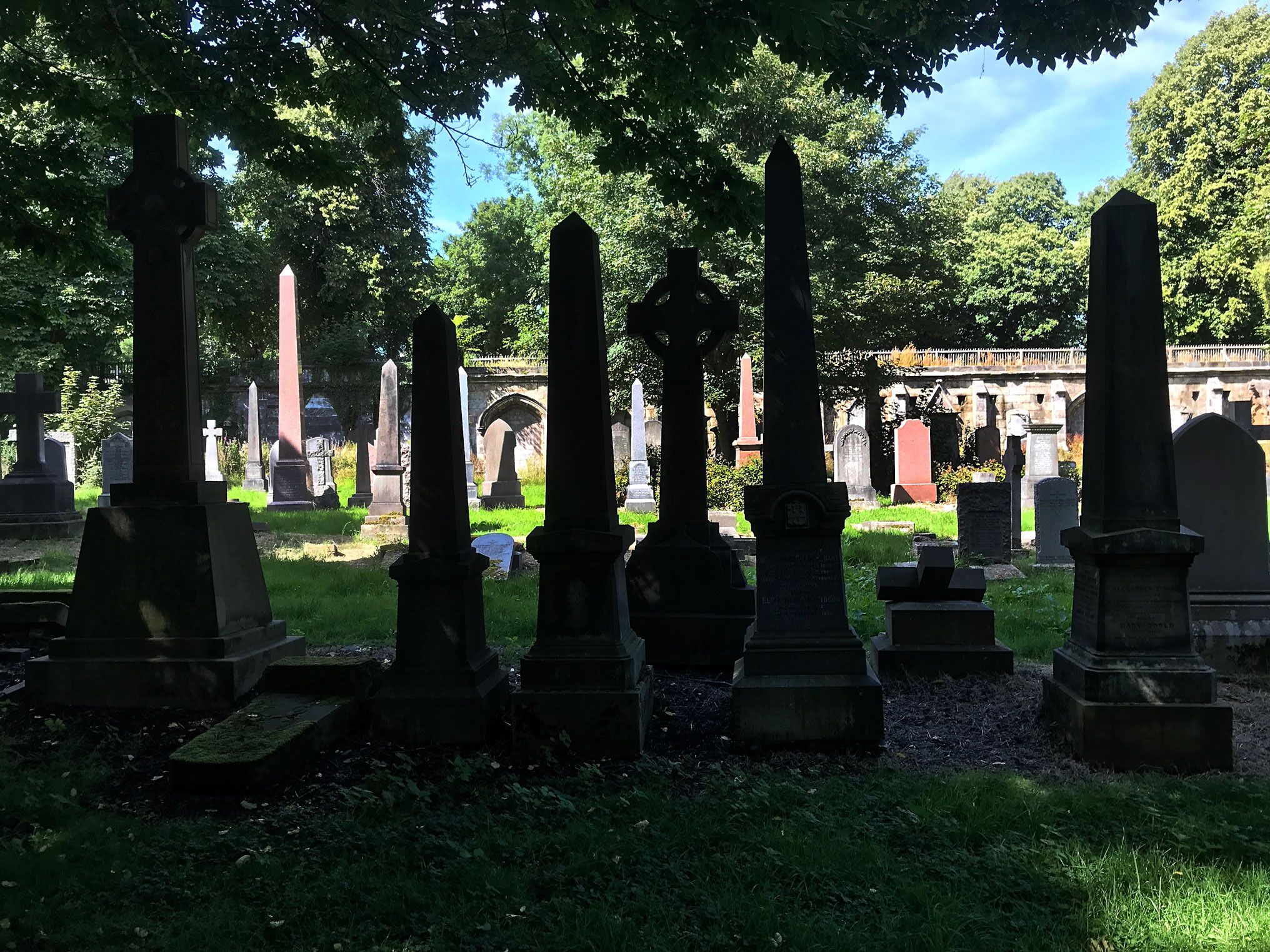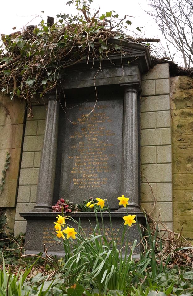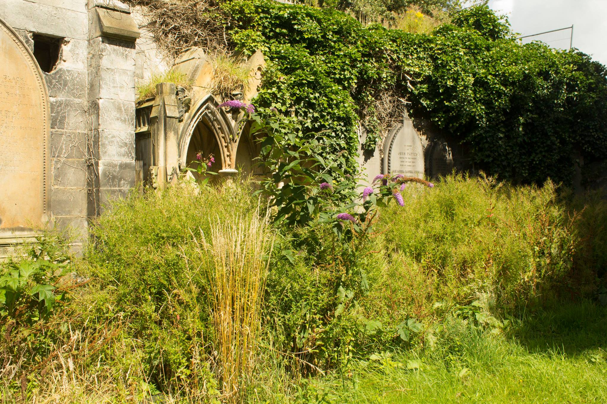 This caught our eye in passing. Had to clear it a bit! Aside from a slur on Scotia’s Darling Seat, it’s an unusual choice of Biblical quotation – not to mention those serpents emerging from the bosses. It’s Hebrews Ch.13 V.14 (and I rather like V.16 also). Didn’t find the cross’s base, so we don’t know who was commemorated. Yet…